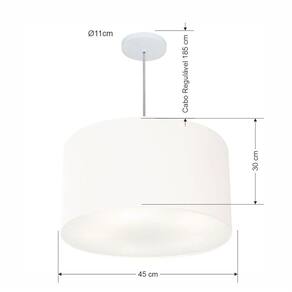 Lustre Pendente Cilíndrico Vivare Md-4257 Cúpula em Tecido 45x30cm - Bivolt - Cor: Branca | Voltagem: 127/220V