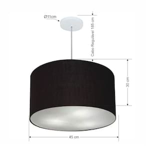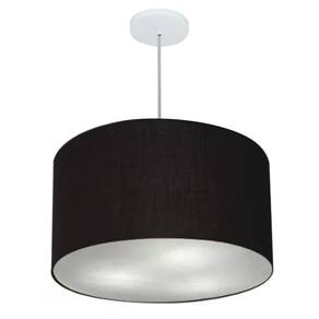 Lustre Pendente Cilíndrico Vivare Md-4257 Cúpula em Tecido 45x30cm - Bivolt - Cor: Preto | Voltagem: 127/220V