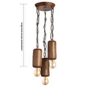 Lustre Pendente Colonial Em Tronco De Madeira Rústico 80Cm Lustre Pendente em Madeira Rústica Comprimento total do lustre 80 cm Kit com 2 lustres