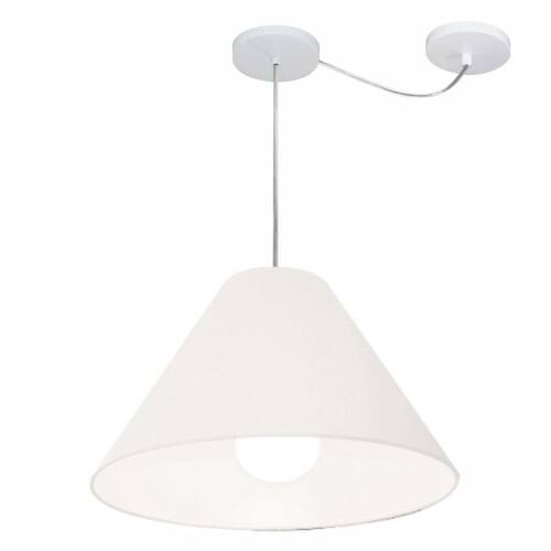 Lustre Pendente Cone Com Desvio de Centro Vivare Md-4272 Cúpula em Tecido 15x40cm - Bivolt - Cor: Branco | Voltagem: 127/220V
