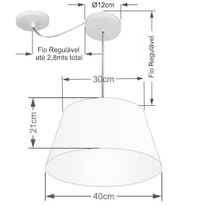 Lustre Pendente Cone Com Desvio de Centro Vivare Md-4279 Cúpula em Tecido 21/40x30cm