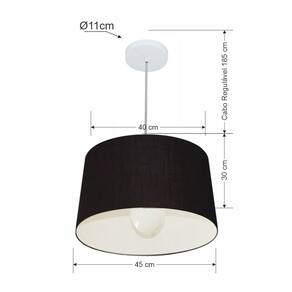 Lustre Pendente Cone Md-4241 Cúpula Tecido 30/45x40cm Preto