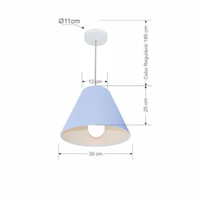 Lustre Pendente Cone Vivare Md-4028 Cúpula em Tecido 25/30x12cm - Bivolt - Cor: Azul-bebê | Voltagem: 127/220V