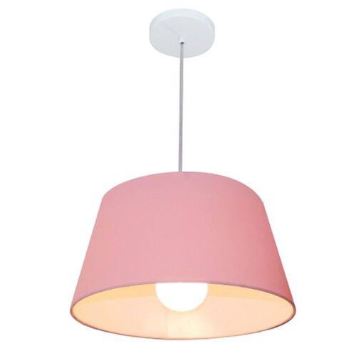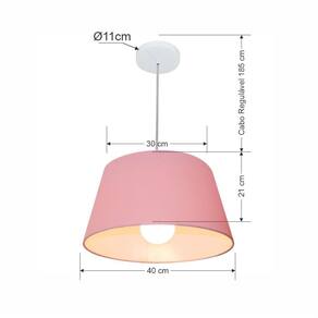 Lustre Pendente Cone Vivare Md-4039 Cúpula em Tecido 21/40x30cm - Bivolt - Cor: Rosa-bebê | Voltagem: 127/220V