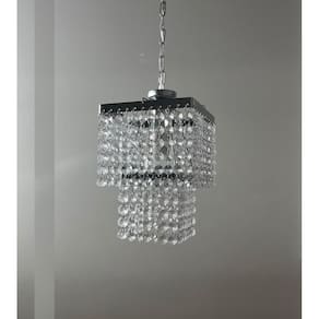especificações técnicas: Base: quadrada em metal cromado com 2 camadas Altura total: 27 cm + 25 cm de corrente ajustável = até 52 cm pode ser instalado diretamente no teto, sem a corrente Castanha: modelo 804 - cristal acrílico de alto brilho 14 mm Lâmpada: 1x soquete e-27 bivolt - compatível com led, comum ou econômica Peso aproximado: 1,0 kg Voltagem: bivolt 110v ou 220v Instalação: produto enviado montado e pronto para instalar