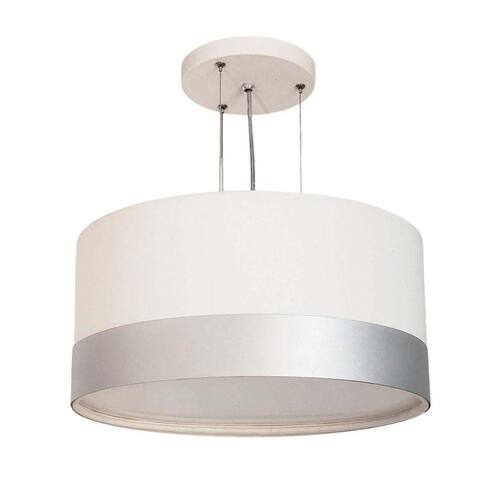 Lustre Pendente Cúpula Branco com Detalhe Prata 30x15 Lustre Pendente EM TECIDO 30CMMaterial: cúpula em tecido branco com acabamento em pet flexível na cor prataDimensões: Largura 30cm x Altura 15cmQuantidade Lâmpada: 02 Indicado lâmpada LED 12w - Não inclusaCúpula com fechamento inferior resistente para esconder as lâmpadas.Canopla 12cm com cabo de aço ajustável 1,20 mtsVoltagem: BivoltSoquete: E-27 ComumForro de laje, Forro de gesso acartonado, Forro de madeira, Forro de lã de vidro, Forro de PVC, Forro modular, Forro alvenaria.