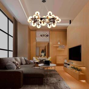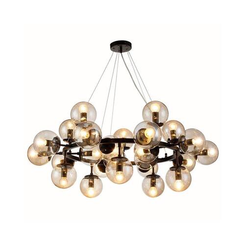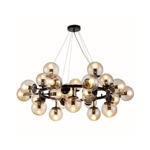 Descrição Material: estrutura em Metal e Cúpula de Vidro Cor:estrutura preta e Cúpulas Champagne Quantidade de lâmpadas: 25 lâmpadas Não inclusas Bocal: e-27 em LED Medidas: 40 x 100 cm Altura x Diâmetro