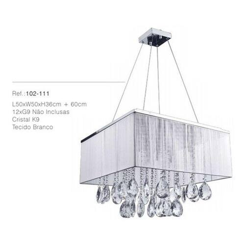 L50xW50xH36cm + 60cm 12xG9 Não Inclusas Cristal K9 Tecido Branco
