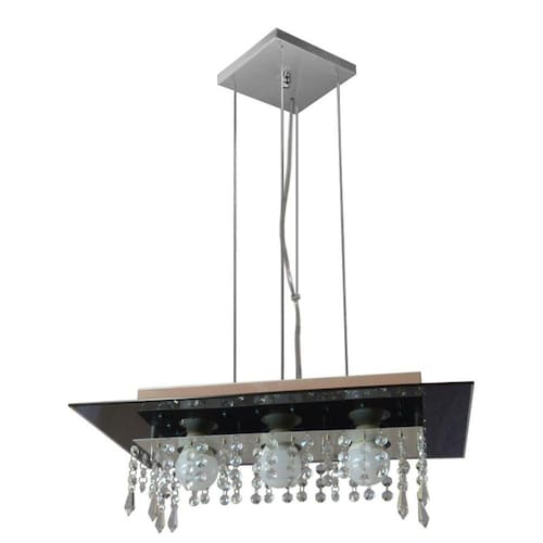 Lustre Pendente de Vidro com cristais para 03 lâmpadas - Lâmpadas não inclusas Pode ser utilizado lâmpadas de LEDCom design moderno e elegante, este pendente é ideal para mesa de jantar.Descrição do Produto e MedidasProduto em alumínio escovado e 01 vidro com 03 furos para encaixe das lâmpadasCapacidade para 03 lâmpadas - NÃO INCLUSAS Altura total - 20cm da base até o último cristalAltura dos cabos de aço e fio de silicone - 80cm regulável Medidas do vidro 50cm x 28cmQuantidade de cristais: 120 cristais legítimos no modelo castanha e 08 cristais legítimos no modelo pinoSoquete no Padrão E-27Utiliza lâmpadas fluorescentes compactas eletrônicas ou LED - NÃO INCLUSAS Pode ser instalado em laje, madeira, forro de gesso ou PVCPeso + ou - 3 KgProduto Bivolt - 110v - 220v
