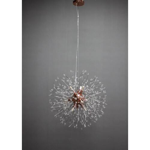 Cód: 15207-PL Lustre Pendente Dente de Leão Cristais Ouro Rose Redondo 6G9 45cm Soquete: 6*G9 (Lâmpadas não inclusas) Material: Metal e Cristais Cor: Ouro Rose Dimensões: ø45cm Canopla: ø10cm Comprimento do Cabo: 140cm