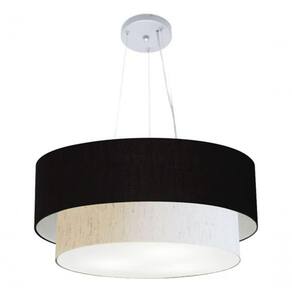 Lustre Pendente Duplo Cilíndrico Vivare Md-4073 Cúpula Em Tecido 80x60cm - Bivolt Preto-linho-bege 127/220v
