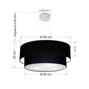 Lustre Pendente Duplo Cilíndrico Vivare Md-4073 Cúpula em Tecido 80x60cm - Bivolt - Cor: Preto | Voltagem: 127/220V