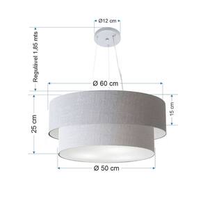 Lustre Pendente Duplo Cilíndrico Vivare Md-4082 Cúpula em Tecido 60x50cm - Bivolt - Cor: Rustico-cinza | Voltagem: 127/220V