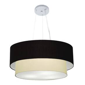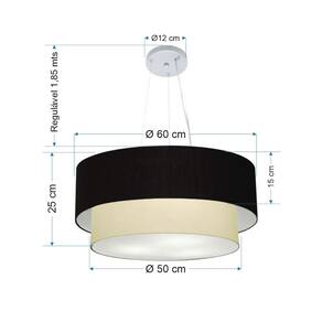 Lustre Pendente Duplo Cilíndrico Vivare Md-4082 Cúpula em Tecido 60x50cm - Bivolt - Cor: Preto-bege | Voltagem: 127/220V