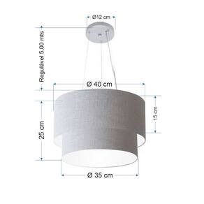 Lustre Pendente Duplo Cilíndrico Vivare Md-4158 Cúpula em Tecido 40x35cm - Bivolt - Cor: Rustico-cinza | Voltagem: 127/220V