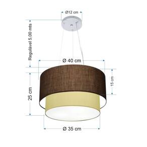 Lustre Pendente Duplo Cilíndrico Vivare Md-4158 Cúpula em Tecido 40x35cm - Bivolt - Cor: Café-algodão-crú | Voltagem: 127/220V