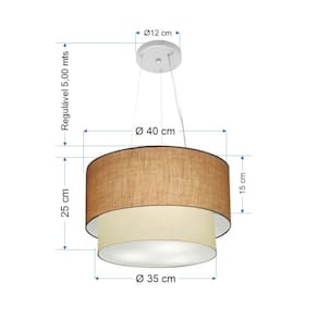Lustre Pendente Duplo Cilíndrico Vivare Md-4158 Cúpula em Tecido 40x35cm - Bivolt - Cor: Palha-bege | Voltagem: 127/220V