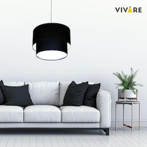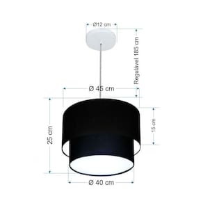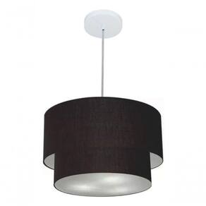 Lustre Pendente Duplo Cilíndrico Vivare Md-4350 Cúpula Em Tecido 45x40cm - Bivolt Preto 127/220v