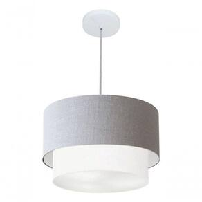 Lustre Pendente Duplo Cilíndrico Vivare Md-4350 Cúpula Tecido 45x40cm - Bivolt Rustico-cinza-branco 127/220v