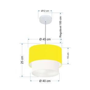 Lustre Pendente Duplo Cilíndrico Vivare Md-4354 Cúpula Tecido 45x40cm - Bivolt - Cor: Amarelo-branco | Voltagem: 127/220V