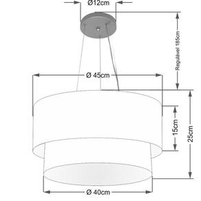Lustre Pendente Duplo Cilíndrico Vivare Md-4369 Cúpula em Tecido 45x40cm