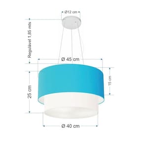Lustre Pendente Duplo Cilíndrico Vivare Md-4369 Cúpula Tecido 45x40cm - Bivolt Azul-turquesa-branco 127/220v