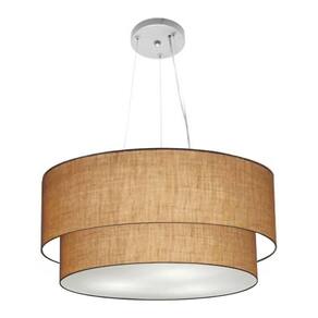 Lustre Pendente Duplo Cilíndrico Vivare Md-4371 Cúpula Tecido 80x70cm - Bivolt Palha 127/220v
