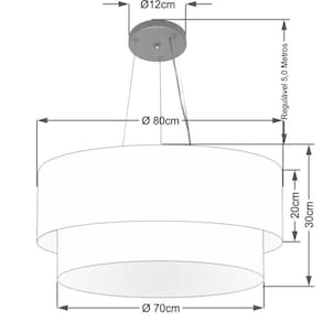 Lustre Pendente Duplo Cilíndrico Vivare Md-4371 Cúpula Tecido 80x70cm