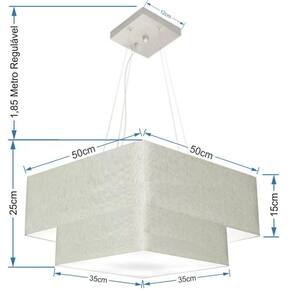 Lustre Pendente Duplo Quadrado Vivare Md-4066 Cúpula em Tecido 50x35cm