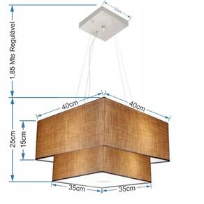 Lustre Pendente Duplo Quadrado Vivare Md-4157 Cúpula em Tecido 40x35cm Palha