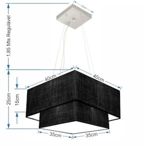 Lustre Pendente Duplo Quadrado Vivare Md-4157 Cúpula em Tecido 40x35cm Preto