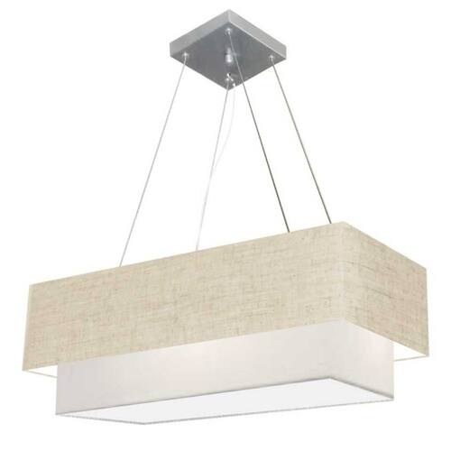Lustre Pendente Duplo Retangular Vivare Md-4138 Cúpula em Tecido 70x30cm x 60x25cm - Bivolt - Cor: Rustico-bege-branco | Voltagem: 127/220V