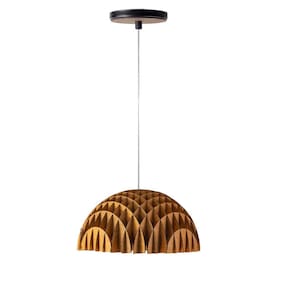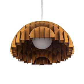 Inspirado no design escandinavo o pendente DOMUS transmite toda a imponência do uso da madeira na decoração. Sai lateralmente uma luz suave destacando suas curvas e sobreposições. Para baixo o foco de luz é intenso, toda a energia da madeira se propaga de forma harmônica. Com estrutura 100% em madeira, usa lâmpada padrão G9 e acompanha globo de vidro leitoso branco.