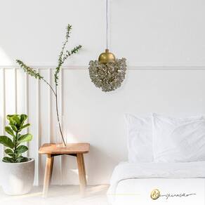 O Pendente Estela Menor, é um modelo semelhante ao nosso Pendente Castanha Redondo, porém ele possui um formato diferente, mas ainda esbanjando seus cristais que destacam qualquer ambiente, sua pintura viva exalta ainda mais beleza a essa peça.Cor: DouradoSoquete: 1 x G9Tensão: 110/220VPotência Máx: 12WDiâmetro: 20 cmDiâmetro da canopla: 12 cmEspessura da canopla: 2 cmComprimento do cabo: 2,5 mMaterial: Metal e Cristal
