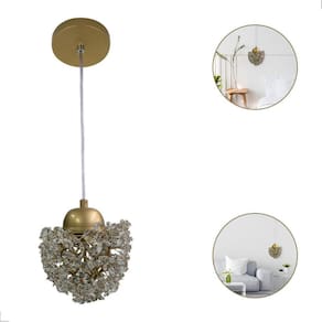 Cor: Dourado Soquete: 1 x G9 Tensão: 110/220V Potência Máx: 12W Diâmetro: 20 cm Diâmetro da canopla: 12 cm Espessura da canopla: 2 cm Comprimento do cabo: 2,5 m Material: Metal e Cristal Marca: Não Informado