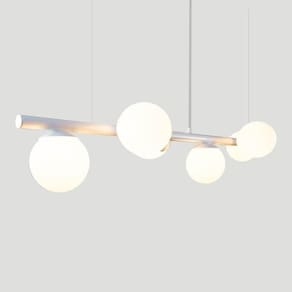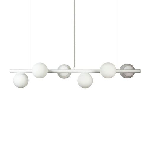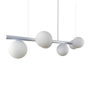 Lustre Pendente Branco - 6 Globos Esfera De Vidro Branco A linha de luminárias modelo tem um ar contemporâneo, um estilo moderno, minimalista e ao mesmo tempo uma sensação retrô. Os pendentes podem ser colocadas em quartos, salas de jantar ou estar e as arandelas indicamos para lounges, salas, dormitórios ou até mesmo em lavabos. Com Design simples trazem classe e estilo a qualquer ambiente. Todos luminárias da linha são produzidas em alumínio com esferas de vidro branco. Descrição Técnica: - Modelo: Lustre Pendente com 6 Globos de Vidro - Acabamento: Pintura a pó térmica - Tamanho dos Globos de Vidro: 120mm - Quantidade de Globos de Vidro e soquetes: 6 - Material: Globo em Vidro e Hastes em Alumínio - Tamanho Aproximado (LxAxP) com os Globos de Vidro: 100 cm X 20 cm X 20 cm - Cabo: Cabo Revestido em Tecido - 70cm - Soquete: Padrão G9 - Bivolt: Sim ****