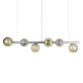 Com Design simples trazem classe e estilo a qualquer ambiente. Todos luminárias da linha são produzidas em alumínio com esferas de vidro. Descrição Técnica: - Modelo: Lustre Pendente com 6 Globos de Vidro - Acabamento: Pintura a pó térmica - Tamanho dos Globos de Vidro: 120mm - Quantidade de Globos de Vidro e soquetes: 6 - Material: Globo em Vidro e Hastes em Alumínio - Tamanho Aproximado (LxAxP) com os Globos de Vidro: 100 cm X 20 cm X 20 cm - Cabo: Cabo Revestido em Tecido - 70cm - Soquete: Padrão G9 - Bivolt: Sim