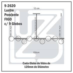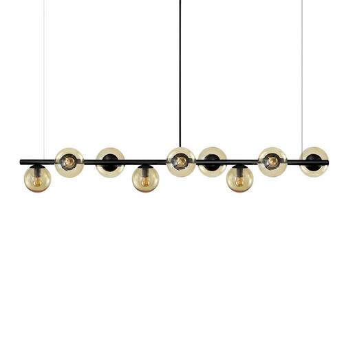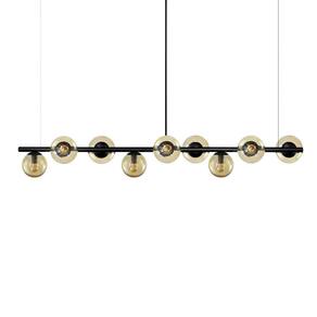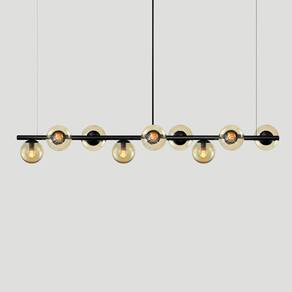 Lustre Pendente Figo Preto 1,5M - 9 Globos de Vidro Âmbar