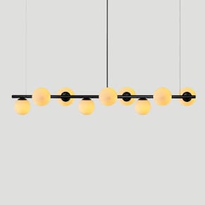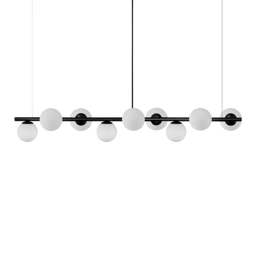 A linha de luminárias modelo FIGO tem um ar contemporâneo, um estilo moderno, minimalista e ao mesmo tempo uma sensação retrô. Os pendentes podem ser colocadas em quartos, salas de jantar ou estar e as arandelas indicamos para lounges, salas, dormitórios ou até mesmo em lavabos. Com Design simples trazem classe e estilo a qualquer ambiente.Todos luminárias da linha Figo são produzidas em alumínio com globos de vidro branco. Descrição Técnica:- Modelo: Lustre Pendente FIGO com 6 Globos de Vidro - Acabamento: Pintura a pó térmica- Tamanho dos Globos de Vidro: 120mm- Quantidade de Globos de Vidro e soquetes: 6- Material: Globo em Vidro e Hastes em Alumínio- Tamanho Aproximado (LxAxP) com os Globos de Vidro: 150 cm X 20 cm X 20 cm- Cabo: Cabo Revestido em Tecido - 70cm- Soquete: Padrão G9- Bivolt: Sim **Lâmpadas vendidas separadamente**