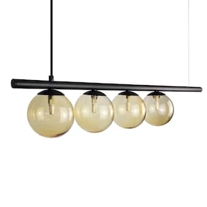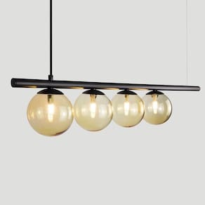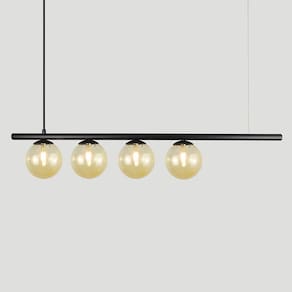 Com Design simples trazem classe e estilo a qualquer ambiente. Todos luminárias da linha são produzidas em alumínio com esferas de vidro . Descrição Técnica: - Modelo: Lustre Pendente com 4 Globos de Vidro - Acabamentura o: Pint- Tamanho dos Globos de Vidro: 140mm - Quantidade de Globos de Vidro e soquetes: 4 - Material: Globo em Vidro e Hastes em Alumínio - Tamanho Aproximado (LxAxP) com os Globos de Vidro: 100 cm X 17 cm X 27 cm - Cabo: Cabo Revestido em Tecido - 70cm - Soquete: Padrão G9 - Bivolt: Sim ****