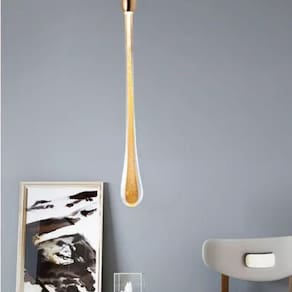 Com formato inspirado na fluidez de uma gota, combina curvas elegantes e acabamento dourado para um toque de sofisticação. A estrutura equilibrada e o brilho refinado destacam o ambiente com elegância e modernidade.