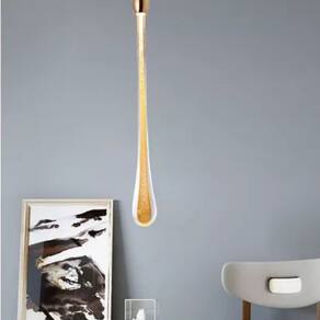 Lustre Pendente Gota Dourado 3W 3000K Bivolt Domum - Ideal para composições elegantes e contemporâneas.