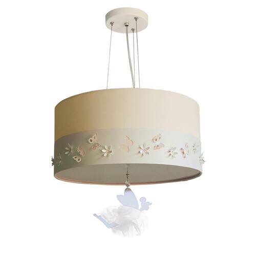 Lustre pendente infantil fadas cúpula crú 30x15 2e27 Lumiária pendente sobrepor em tecido 30cm Material: cúpula em tecido com acabamento em tecido crú. Pingentes: 01 pingente fada em acrílico com tule branco,cristal k9 transparentes. Dimensões: largura 30cm x altura 15cm Cúpula com fechamento inferior resistente para esconder as lâmpadas. Quantidade lâmpada: 02 indicado lâmpada led 15w- não inclusa Voltagem: bivolt Soquete: e-27 comum Fixação pendente:
