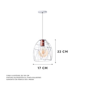 Lustre Pendente Interno Aramado Bala Branco Com Cobre Deixe sua casa muito mais moderna e sofisticada com os pendentes da Ideallume. O produto não enferruja nunca. Ele é ideal para ser utilizada em áreas internas em cima da sua mesa, balcao gourmet, balcao da sua churrasqueira. Sua pintura eletrostática é extremamente resistente a maresia, o que confere extrema proteção e durabilidade ao item. Com esse produto você dará um toque de beleza que valoriza sua casa.