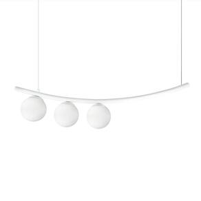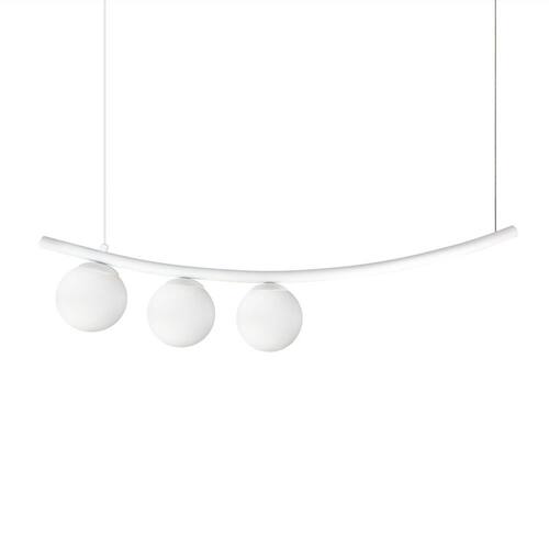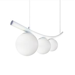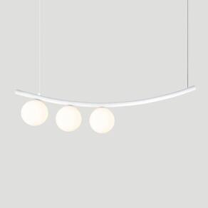 Descrição Técnica: - Modelo: Lustre Pendente Ktna - Acabamento: Pintura a pó térmica - Tamanho dos Globos de Vidro: 140mm - Quantidade de Globos de Vidro e soquetes: 3 - Material: Globo em Vidro e Hastes em Alumínio - Tamanho Aproximado (LxAxP) com os Globos de Vidro: 100 cm X 20 cm X 20 cm - Cabo: Cabo Revestido em Tecido - 70cm - Soquete: Padrão G9 - Bivolt: Sim