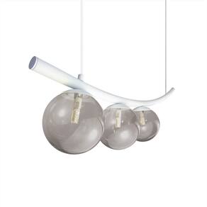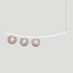 Lustre Pendente Ktna BRANCO 3 Globos Vidro Fumê