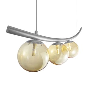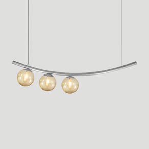 Descrição Técnica: - Modelo: Lustre Pendente Ktna - Acabamento: Pintura a pó térmica - Tamanho dos Globos de Vidro: 140mm - Quantidade de Globos de Vidro e soquetes: 3 - Material: Globo em Vidro e Hastes em Alumínio - Tamanho Aproximado (LxAxP) com os Globos de Vidro: 100 cm X 20 cm X 20 cm - Cabo: Cabo Revestido em Tecido - 70cm - Soquete: Padrão G9 - Bivolt: Sim