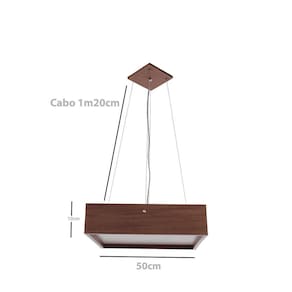 Material: MDF e AcrílicoMadeira: Preto Resistente a Maresia Dimensões: 50cm diâmetro, Altura 10cmCabo de aço ajustável 1,2 mtsQuantidade Lâmpada: 4 - Indicado Lâmpadas Led - Não inclusaVoltagem: BivoltSoquete: E-27 ComumIndicação: Áreas InternasInformações ÚteisAcabamento em madeira podem sofrer variações de tonalidade em função de seus veios.As luminárias são feitas para uso interno, portanto sugerimos deixá-la fora da ação do tempo, como sol e chuva.Proibido uso de lâmpadas incandescentes.Para limpeza recomenda-se uso de flanela ou espanador de pó.Fotos ilustrativas podendo variar a tonalidade das cores.Garantia: 90 dias Recomendamos um profissional para a instalação elétrica do produto.