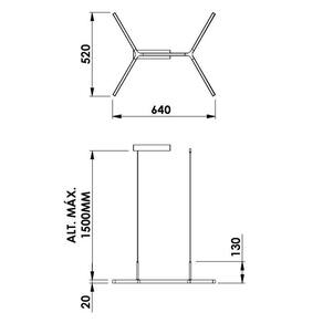 Características Gerais do Produto: dimensões AxLxP mm : 130x520x640 referência: pd15052led3pt cor: preto garantia: 3 anos junto ao fabricante grau de Proteção: IP 20 comprimento dos Cabos: Cabo ajustável, máximo 150 cm eficiência Luminosa: 158 lm/W IRC Índice de Reprodução de Cor : 80 local de Uso: Interno material: alumínio e PSAI Poliestireno de Alto Impacto potência: 19w modelo/tecnologia: led Embutido temperatura da Cor: 3000K - Branco QuenteAcompanha o produto: 1 Lustre Pendente Fit15 Connection 1 Manual de Instalação Ean: 7898423020094