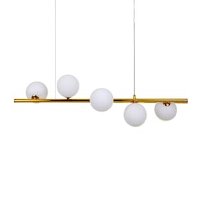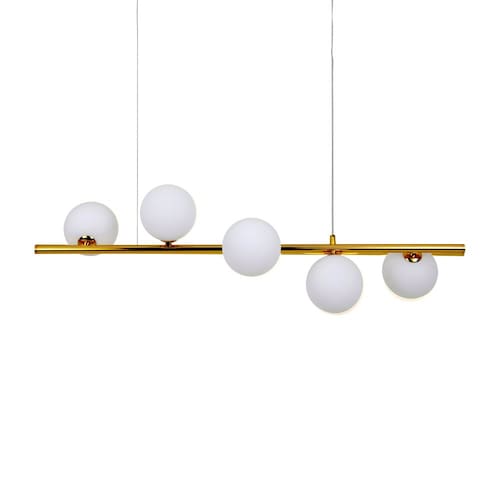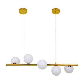 Especificações gerais do produto: Voltagem: Bivolt Dimensões AxLxP (mm): 1200x900x310 Cor: Dourado Material: Metal e Vidro Garantia: 1 ano junto ao fabricante Referência: LM-002 Comprimento dos Cabos: Cabo ajustável, aproximadamente 100cm Lâmpada Inclusa: Não Local de Uso: Interno Número de Lâmpadas: 5 Potência Máxima (por soquete): 40W Soquete: G9 O que acompanha o produto: 1 Lustre Pendente